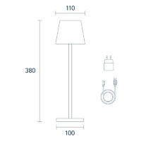 LED Akku Tischleuchte Nuindie 2,2W 822-27 168-197lm IP54 45° 380mm dünenbeige dimmbar
