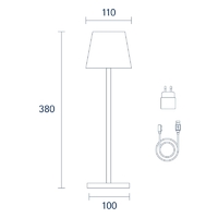 LED Akku Tischleuchte Nuindie 2,2W 822-27 168-197lm IP54 45° 380mm weiß dimmbar