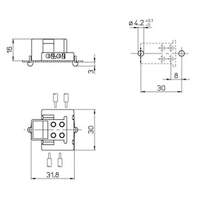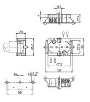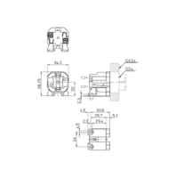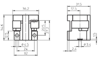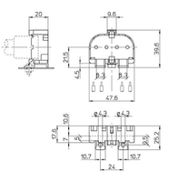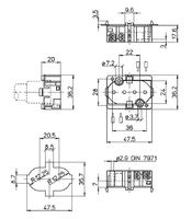 Aufbaufassung G23, Gehäuse: PBT GF, weiß, T140, Doppel-Steckklemmen: 0,5–1 mm², Durchgangslöcher für Schrauben M4, Zentrales Durchgangsloch für Schraube M3, Typ: 35006