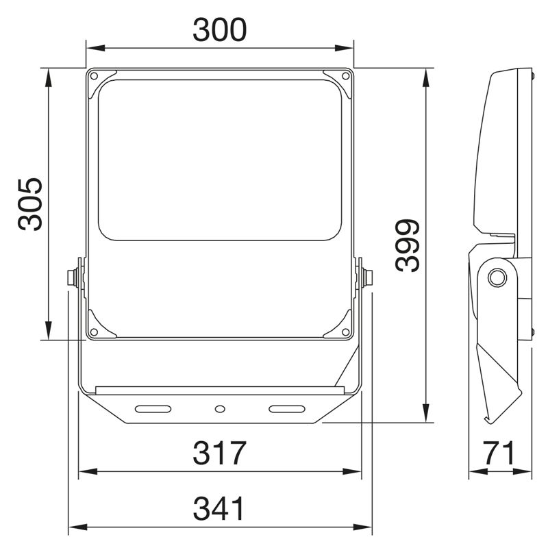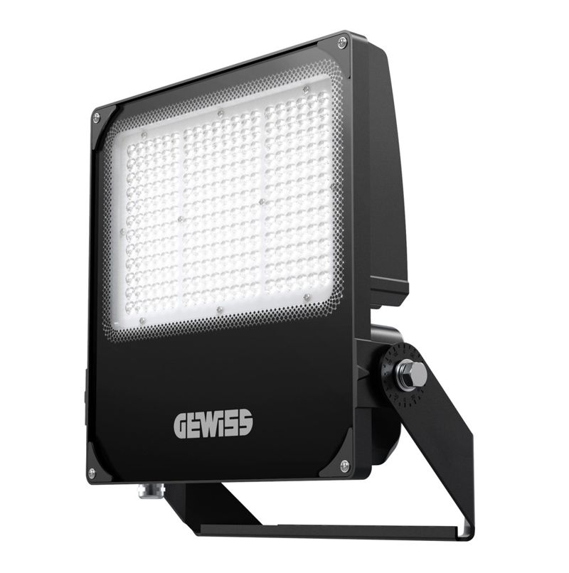 LED-Scheinwerfer, der in mittel- und hochleistungsfähigen Versionen für Außen- und Innenanwendungen in Industrie-, Tertiär- und Sportumgebungen wie Fassaden, Lagerhäusern, Parkplätzen und Sportfeldern erhältlich ist