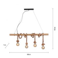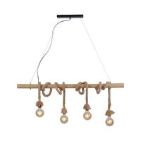 Pendelleuchte Rustikal Retro Holz Optik mit Seil, Tau max. 4x 60W E27 Vintage