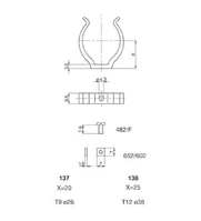Metallhalteclip für T12 Leuchtstoffröhren (38mm); zum Anschrauben, ohne Schrauben